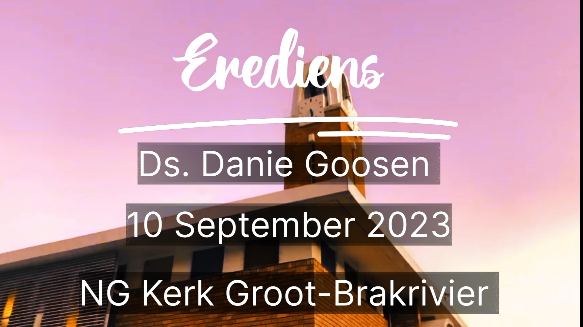 Gepubliseer op 10 September 20238 September 2023 deur NG KerkErediens 10 September 2023 – ‘n Wenspan. Ds. Danie Goosen. NG Kerk Groot-Brakrivier Prediker: Ds. Danie Goosen Tema: ‘n Wenspan! Skriflesing: Matteus 18:15-20 Deel hierdie op: Share on Facebook (Opens in new window) Facebook Share on WhatsApp (Opens in new window) WhatsApp More Share on X (Opens in new window) X Share on Telegram (Opens in new window) Telegram Email a link to a friend (Opens in new window) Email Verwante items