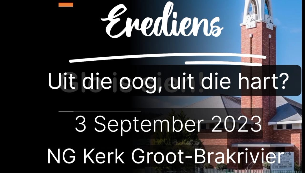 Gepubliseer op 3 September 202331 Augustus 2023 deur NG KerkErediens 3 September 2023 – Uit die oog, uit die hart – Ds. Danie Goosen Prediker: Ds. Danie Goosen Tema: Uit die oog, uit die hart? Skriflesing: Romeine 12: 9-21 Deel hierdie op: Share on Facebook (Opens in new window) Facebook Share on WhatsApp (Opens in new window) WhatsApp More Share on X (Opens in new window) X Share on Telegram (Opens in new window) Telegram Email a link to a friend (Opens in new window) Email Verwante items