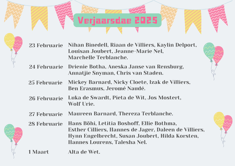 Gepubliseer op 22 Februarie 202522 Februarie 2025 deur NG KerkLief en Leed – Week 9 van 2025 Verjaarsdae Deel hierdie op: Share on Facebook (Opens in new window) Facebook Share on WhatsApp (Opens in new window) WhatsApp More Share on X (Opens in new window) X Share on Telegram (Opens in new window) Telegram Email a link to a friend (Opens in new window) Email Verwante items