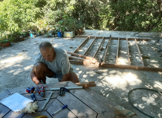 Dries is dividing his time between the building of the centre box of the boat and the school where Norbert and Antonin started to level the floors of two classrooms. They will then do cement floors and I think Francise and Vola, will be very happy after a year of mud floors. It was impossible to keep clean and the new floors will make all the difference.