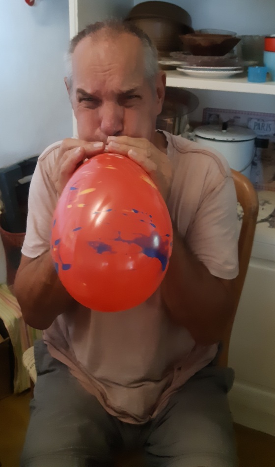 We had a ‘hat tea party’ for the Expedition and Adventure Rangers at home on Saturday afternoon. We decorated the roof (Dries had the unpleasant task of blowing up all those balloons), he baked the banana bread and I the chocolate cake and we both managed to get some kind of hat together for the occasion. Everyone joined in with dancing and singing and we all agreed that it was a gorgeous day. The cake and other goodies were eaten before I could say ‘Oh my hat…’ Dries and I laughed as he managed to get but a tiny piece of his banana bread.