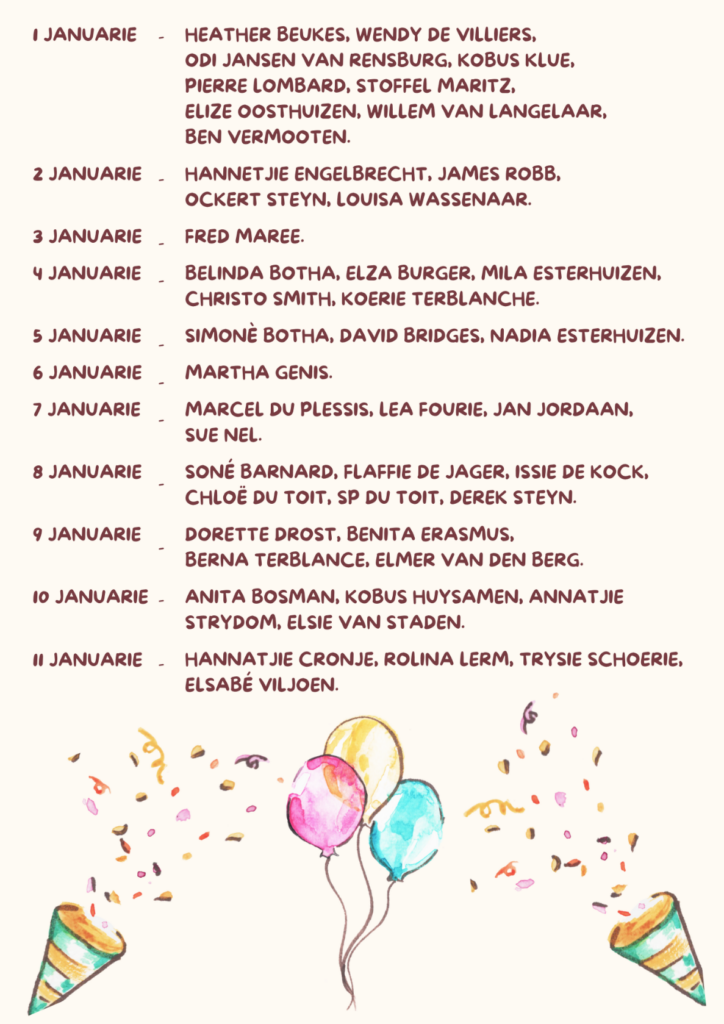 Dit beloof om, soos in die verlede, ‘n aand vol pret, stories en lekker lag te wees. Indien jy belangstel om deel te neem, kan jy die kerkkantoor kontak. Sien jou daar.