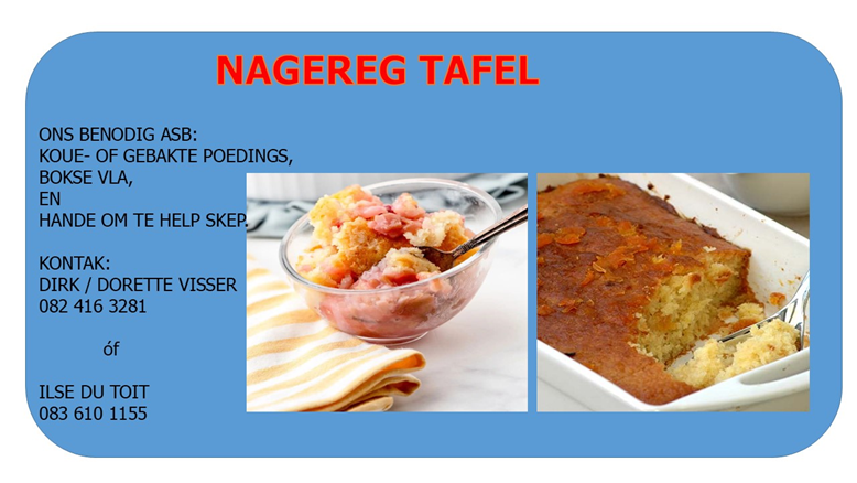 - Daar is GEEN tee vandag na afloop van die erediens nie.