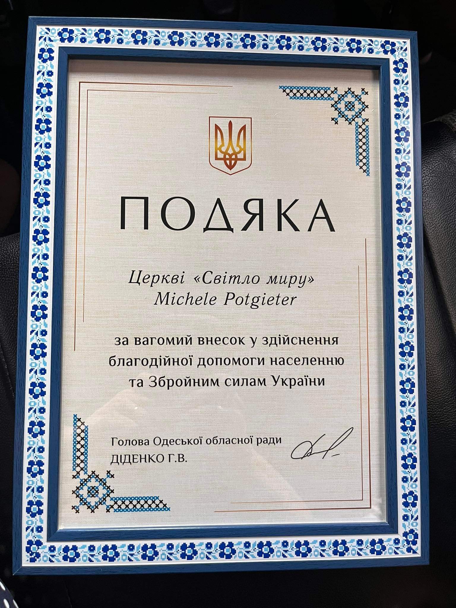 Die week was en Odessa toe. Ek is uitgenooi deur Odessa streeks hoofde, om ‘n forum by te woon wat aangebied is om dankie te sê vir mense wat bystand en hulp gee aan die mense van Oekraïne tydens die oorlog. Dit was ‘n groot voorreg om ‘n toekenning te ontvang. Alle eer aan die Here wat so getrou is. Mag Hy verheerlik word. Hulle het ook klem daarop gelê dat dit die Christene is wat tot op die voor front gaan om kos en medikasie te neem. Daar was generaals en staatshoofde wat hulle dank en waardering uitgespreek het.